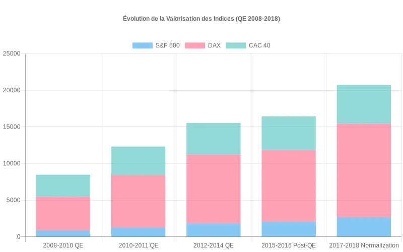 Les politiques de quantitative easing bouleversent l'écosystème financier dans lequel évolue votre portefeuille. Quand les banques centrales injectent massivement des liquidités dans l'économie, les marchés financiers réagissent généralement de façon positive à court terme. L'impact quantitative easing investissements se traduit par une hausse des valorisations d'actifs, particulièrement visible sur les marchés actions et obligataires. Ces interventions créent un environnement où l'argent abondant cherche des rendements, poussant les investisseurs vers des classes d'actifs plus risquées. Par conséquent, votre stratégie d'investissement doit s'adapter à ces périodes d'abondance monétaire pour capturer la création de valeur tout en restant vigilant face aux risques de bulles spéculatives.